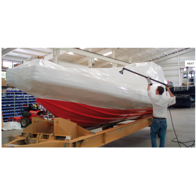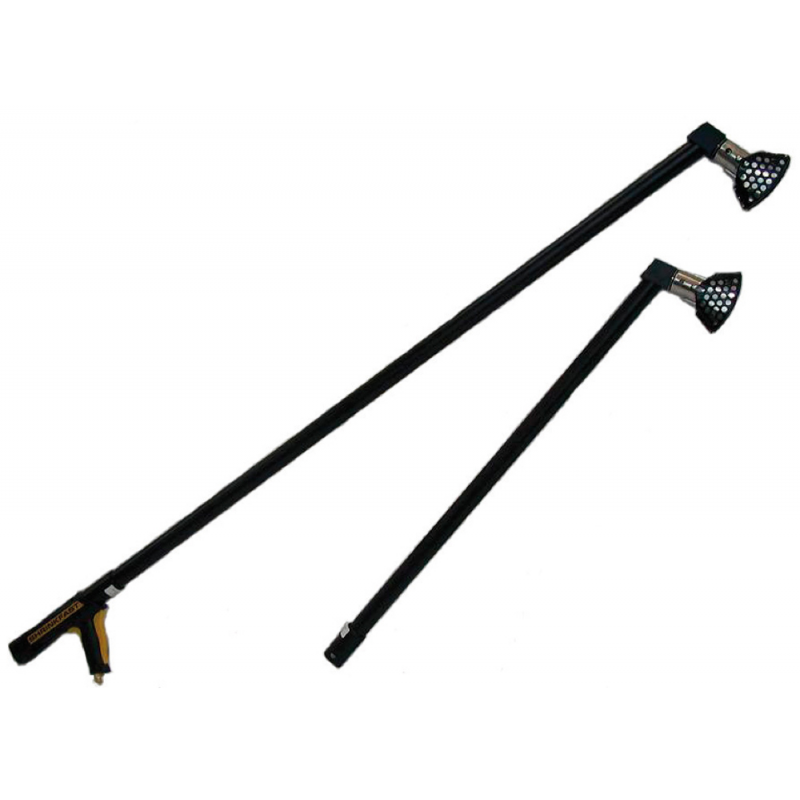 Prolunga dotata di sistema di aggancio a pulsante per collegarsi e scollegarsi dalla pistola e di raccordo ad angolo di 75° per la compattazione del telo nelle parti più lontane e difficili da raggiungere