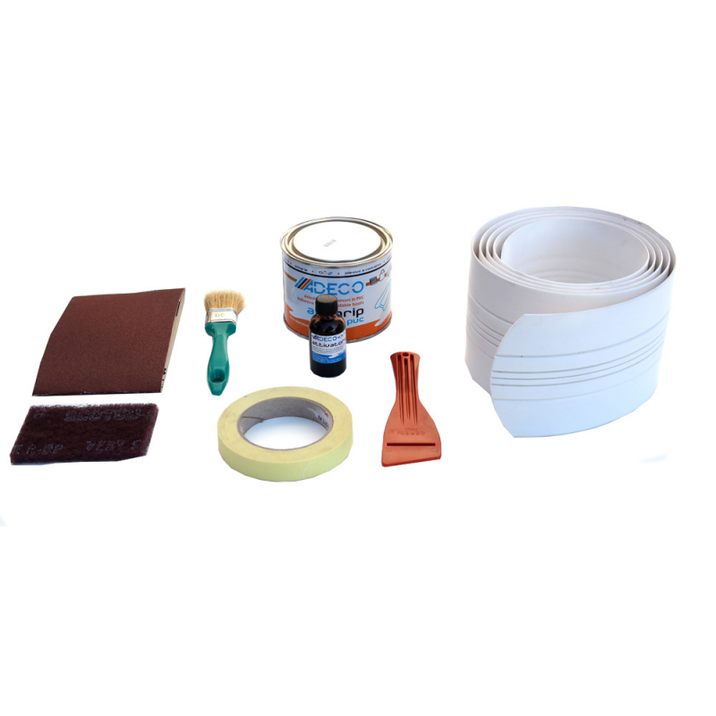 Proteggi Chiglia in pvc bianco adatto alle imbarcazioni in VTR, legno e alluminio. E’ resistente ai rulli alaggio dei carrelli di trasporto, è applicabile anche alle imbarcazioni con chiglia a V non standard e ai tubolari dei gommoni. Fornito del necessario per l’installazione: pennello, carta vetrata, spatola, carta gommata, Scotch Britee confezione colla da 400gr. Lunghezza cm. 120, larghezza cm. 12.