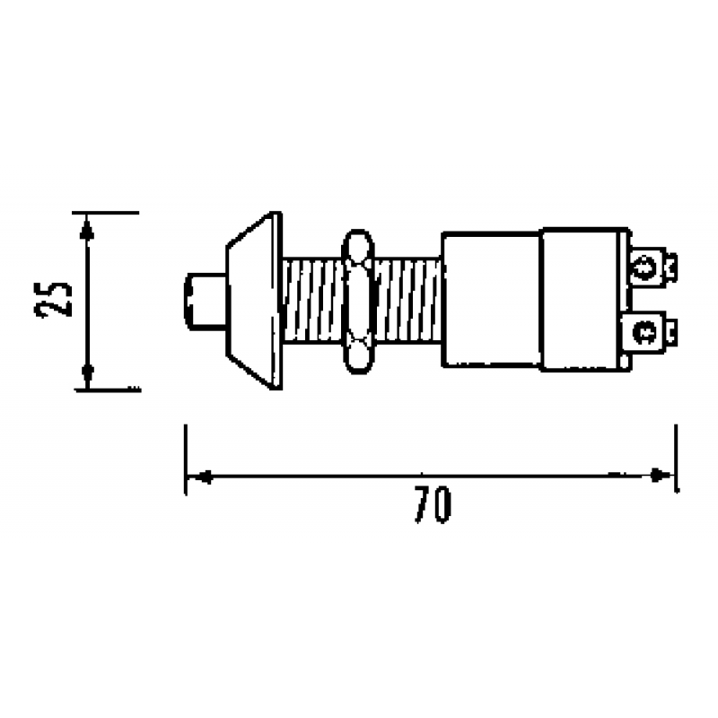 Pulsante 30A in ottone cromato con ghierafrontale. Foro Ø mm.14
