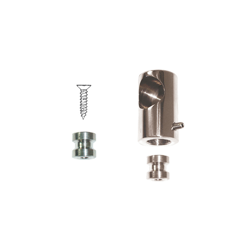Raccordo terminale sinistro per corrimano in acciaio inox AISI 316 ricavato dal pieno, altezza mm. 65, Ø mm.35, per tubo Ø mm. 25. Permette il montaggio con una semplice vite adatto dove non è possibile il fissaggio con prigioniero.