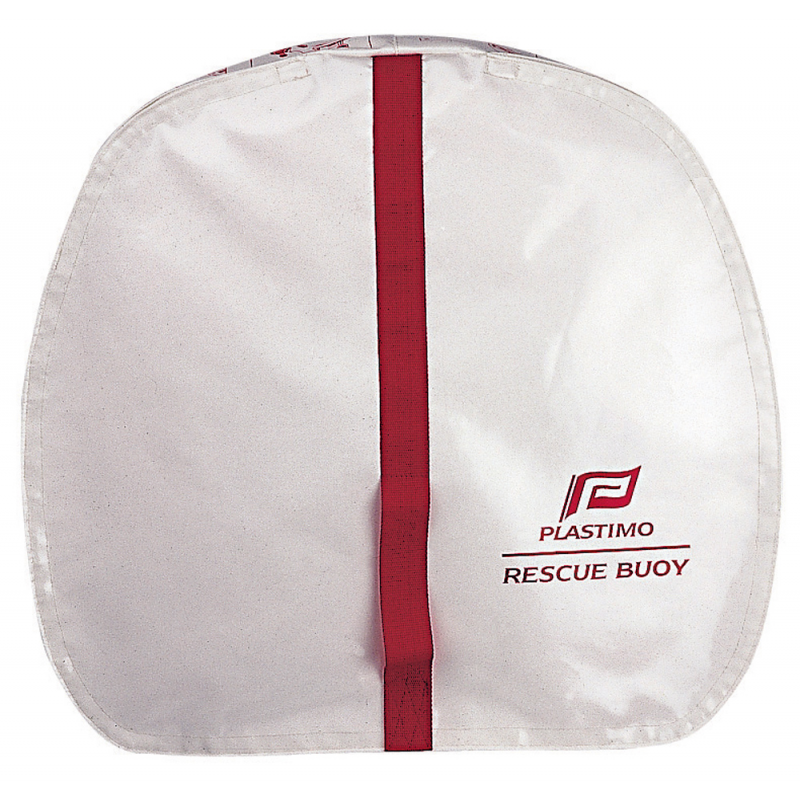 Salvagente a ferro di cavallo per il recupero di un uomo in mare, pronto all’uso, completo di contenitore in tela resistente ai raggi UV con agganci per il pulpito e mt 40 di sagola galleggiante gialla in polietilene Ø mm. 7,5. Dimensioni cm. 60H x 65 x 14. Peso kg.2.3