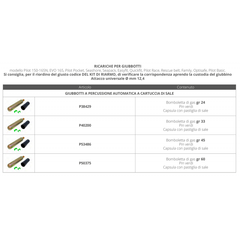 | P40200 | RICARICA EVO/PILOT 150/165 N | Disponibile | |