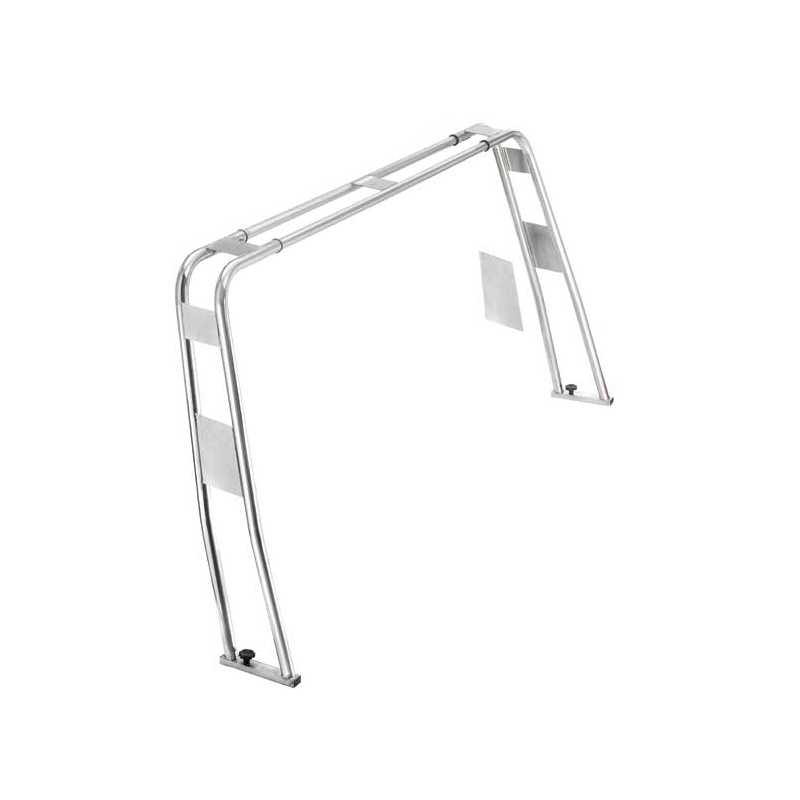 Roll-Bar in acciaio inox abbattibile. Adatto per il montaggio su imbarcazioni. La larghezza tra le due basi può essere accorciata alla misura desiderata, per il montaggio di antenne, luci di via, ecc.