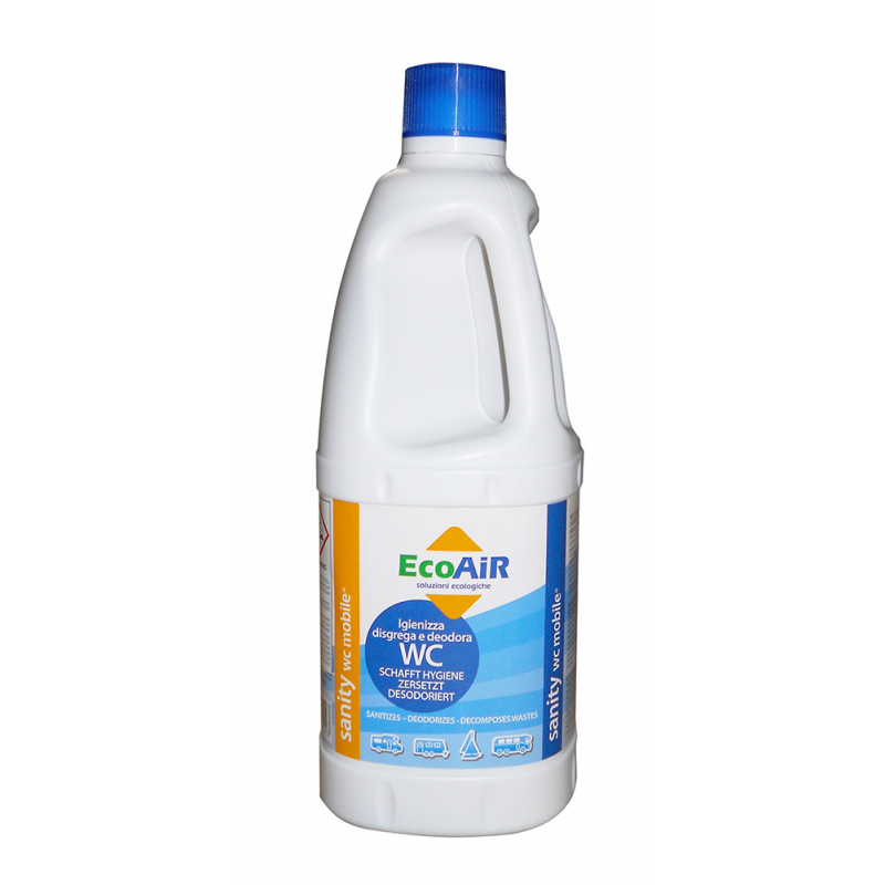 Prodotto disgregante e deodorante per l’igiene delle acque di scarico dei WC di camper, roulotte, imbarcazioni ed autobus. Non contiene sostanze chimiche aggressive quali formaldeide e fosfati. Elimina i cattivi odori, distrugge i rifiuti organici e lascia un fresco e gradevole profumo nella toilette. Flacone da lt.1.