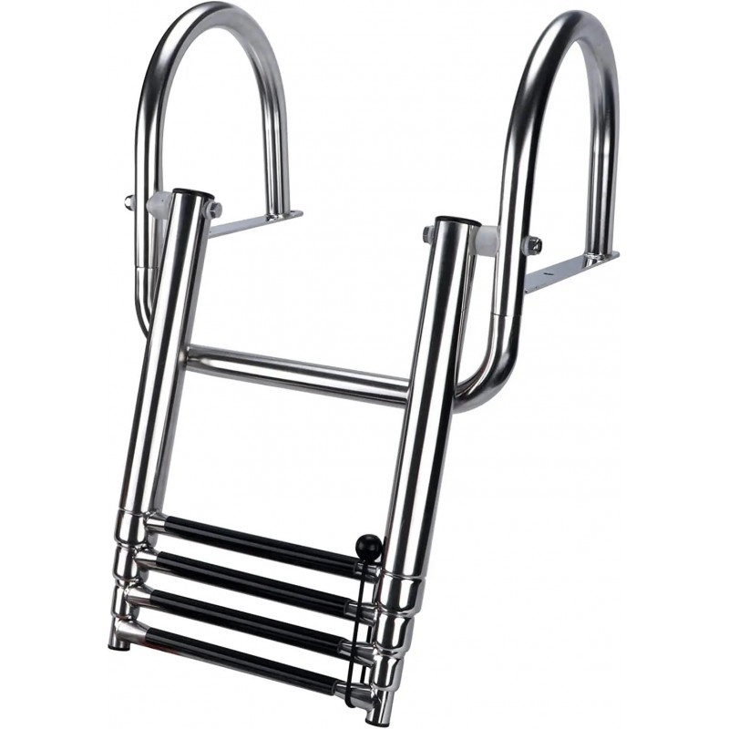 Scaletta in acciaio inox AISI 316 telescopica e ribaltabile con maniglioni. Applicazione sopra la plancetta