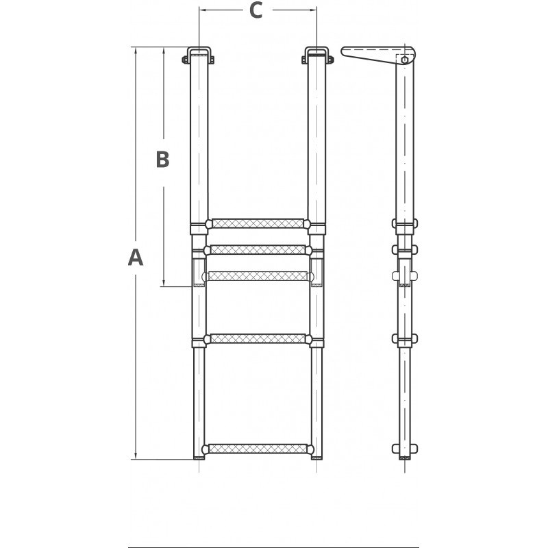 Scaletta in acciaio inox AISI 316 telescopica per applicazione sopra la plancetta. Gradini antiscivolo in plastica bianca.