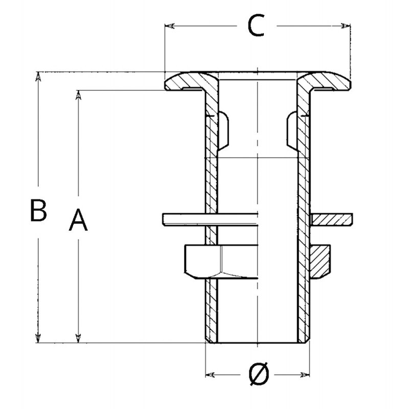 Scarico a marein ottone a filo con portagomma per svuotamento pozzetto.