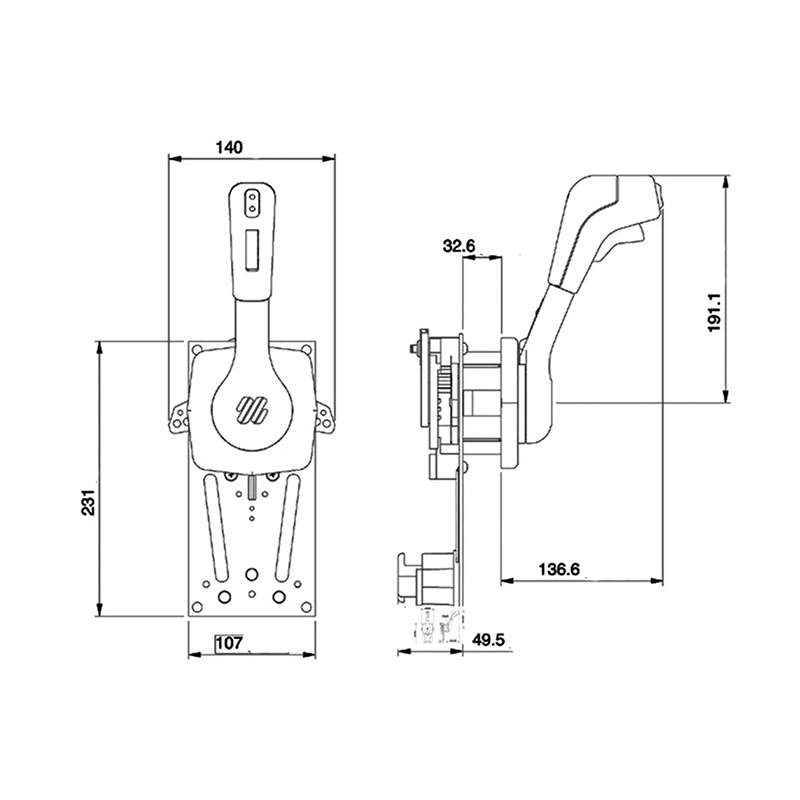 Monoleva ad azione doppia per il controllo del gas e dell’invertitore. Adatta a qualsiasi tipo d’imbarcazione con motore fuoribordo, entrobordo e gruppi poppieri. Rende più facile e sicura la guida evitando automaticamente l’innesto dell’invertitore se il gas non è al minimo. Può essere montate sulla paratia destra o sinistra, orizzontalmente o verticalmente. Provvista di frizione per registrare l’acceleratore, regolabile dall’esterno. Tirando in fuori la leva si disinnesta l’invertitore durante l’operazione di riscaldamento del motore. Mediante l’interruttore di sicurezza X12 (optional), l’avviamento del motore si ottiene solamente con l’invertitore in posizione di folle. Conforme alla normativa EN ISO 11547 in presenza dell’interruttore di sicurezza X12. Dotata di un dispositivo di blocco della leva nella posizione di folle che impedisce manovre accidentali. Completa di un’ interruttore per trim nell’impugnatura che permette la regolazione dell’alzo-piede nei motori fuoribordo e nei gruppi poppieri. Utilizzano i cavi C2-C8-C14 e Mach0 Mach14.Con i Cavi C5, C16 e MACH5 occorre il kit di adattamento K35 (art. 4242069).