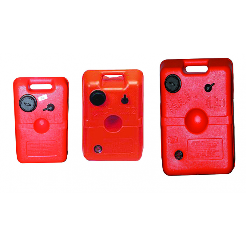 Serbatoio carburante Hulk costruito in Eltex di colore arancio con pipetta e portagomma di pescaggio. Rispondente alle norme R.I.Na./CE.