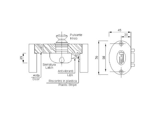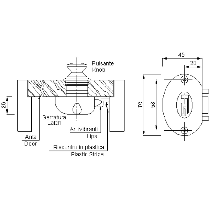 Serratura in plastica con riscontro per art. 5050055/6/8/9/61/63