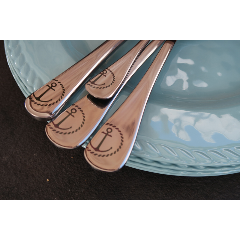 Set per 6 persone di posate in acciaio inox lavabili in lavastoviglie composto da n. 24 pezzi totali: n. 6 cucchiai, n. 6 forchette, n. 6 coltelli, n. 6 cucchiaini da caffé.