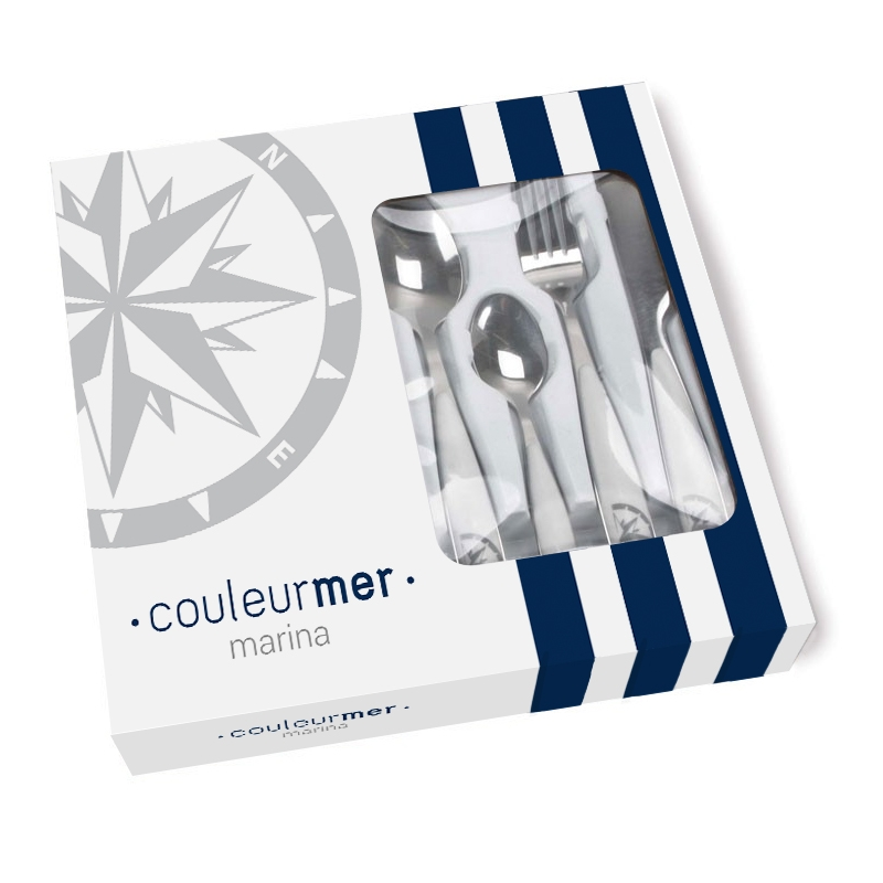 Set per 6 persone di posate in acciaio inox lavabili in lavastoviglie composto da n. 24 pezzi totali: n. 6 cucchiai, n. 6 forchette, n. 6 coltelli, n. 6 cucchiaini da caffé.