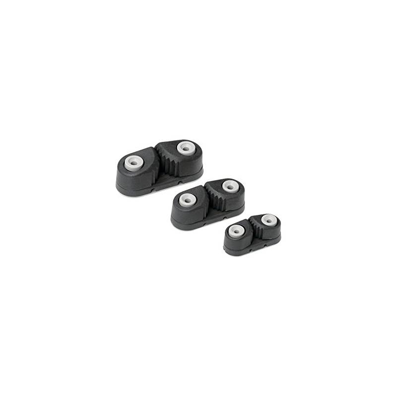 Strozzascotte in composito kevlar/Zytol offre prestazioni migliori rispetto alla fibra dicarbonio per leggerezza e resistenza all’usura. La base è dotata di unabarra in acciaio inox antiusura. Le camme utilizzano molle a lamina inacciaio inox, sono più forti e hanno una durata maggiore rispetto allemolle a filo convenzionali. Per scotta Ø mm.10-14. Interasse fori mm.50. Carico di lavoro kg 260