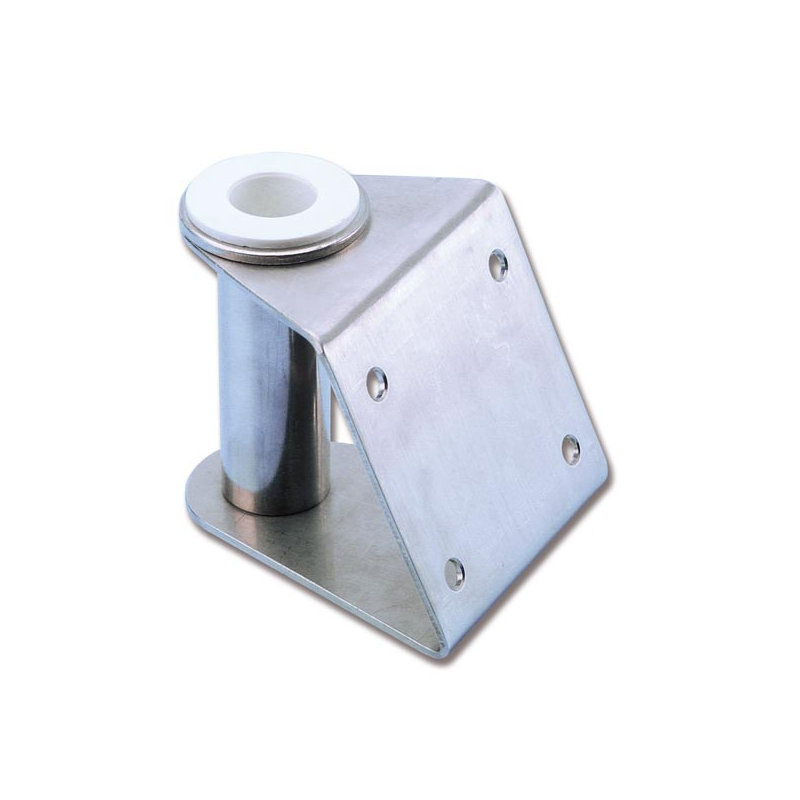 Supporto in acciaio inox con boccola in nylon foro Ø mm. 25, per il montaggio della passerella sulla poppa inclinata, sia positiva che negativa, delle barche a vela.