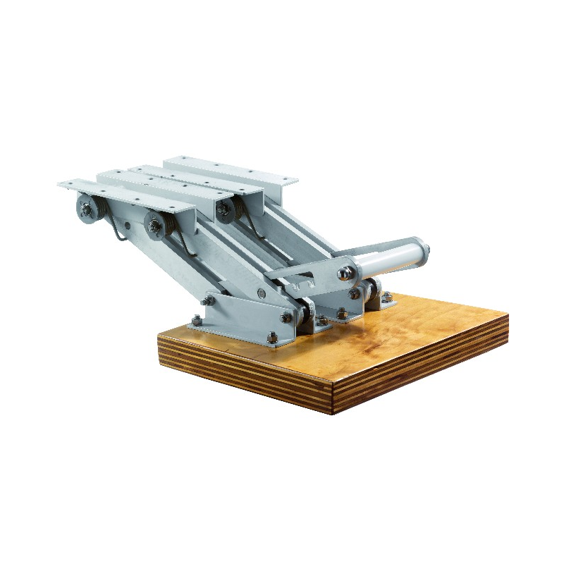 Supporto motore con struttura rinforzata, con tavoletta in legno multistrato spessore mm. 50, molle in acciaio inox molto robuste, regolazione in 4 posizioni, per motori 4 tempi fino a 9,9 HP oppure 2 tempi 25 HP. Escursione verticale cm. 33.