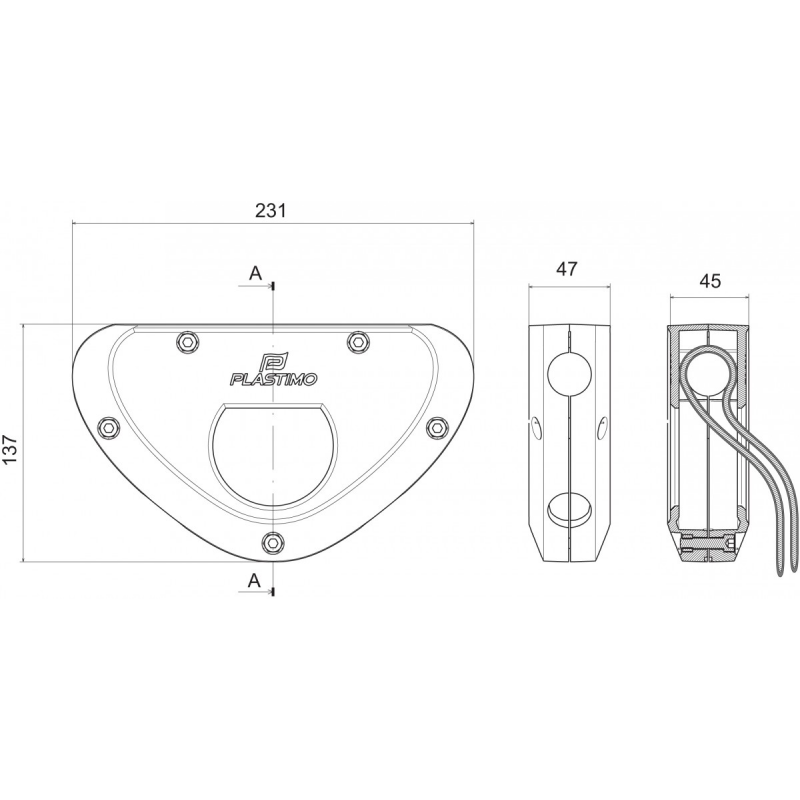 Supporto motore fuoribordo costituito da un modulo in poliammide rinforzata in fibra di vetro e da un cavetto d’acciaio inox di lunghezza cm.90. Adattabile su tutti i tubi da Ø mm.25. Per motori da 5HP di peso massimo kg. 30.