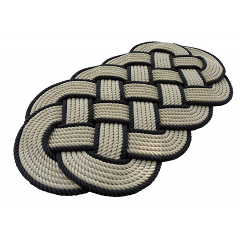 Tappeto ovale tradizionale intrecciato a mano in cordaritorta di fiocco poliestere bicolore. La qualità del materialegarantisce la tenuta del colore e la durata nel tempo. Dim. mm 600x330, Ø cima mm 10