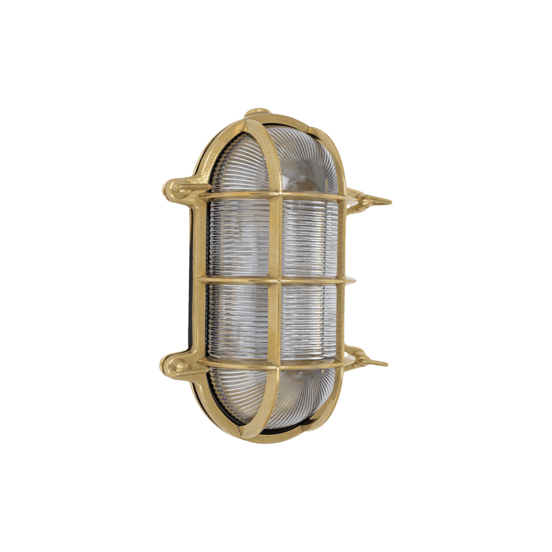 Tartaruga ovalein ottone lucido, due fori di fissaggio. Vetro trasparente.