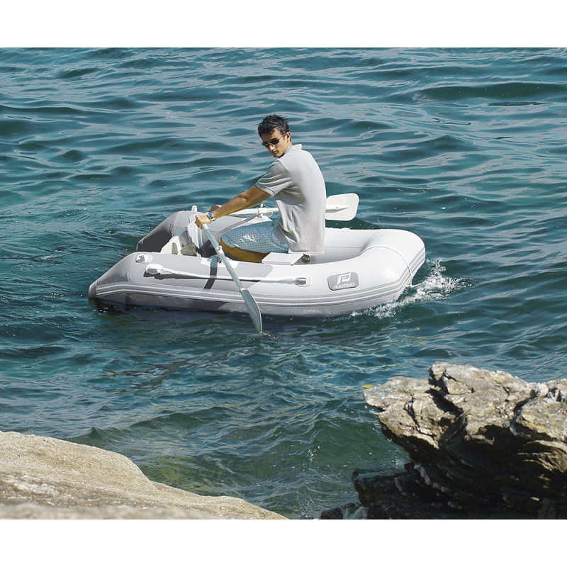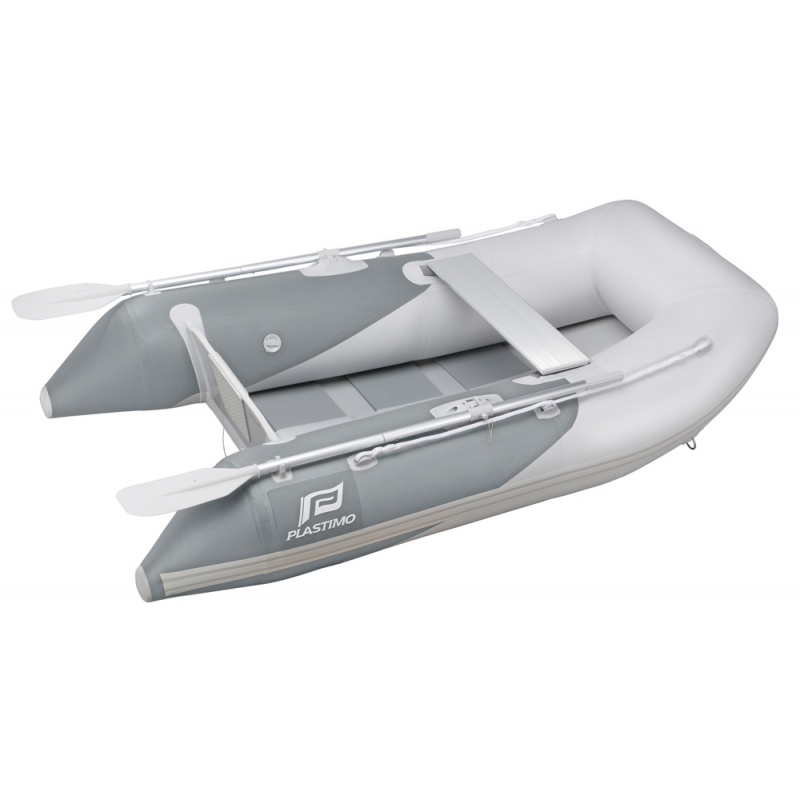 Tender Plastimo ad ampia prua quadrata per un maggior spazio a bordo e coni poppieri rinforzati e dal design innovativo che ne facilita la planata. Dotato di pagliolo a listelli, sedile in alluminio e anelli di rimorchio adatto per nr.2 persone e ad un carico massimo di 250kg., diametro dei tubolari cm.36,due comparti con sedile in alluminio, dotato di sacca per trasporto, kit di riparazione,gonfiatore e due pagaie. Fondo con stecche di larghezza cm.35. Potenza massima del motore 2.5kw (3,3HP). Dim.cm. 196 x 137 x 46,peso kg. 17