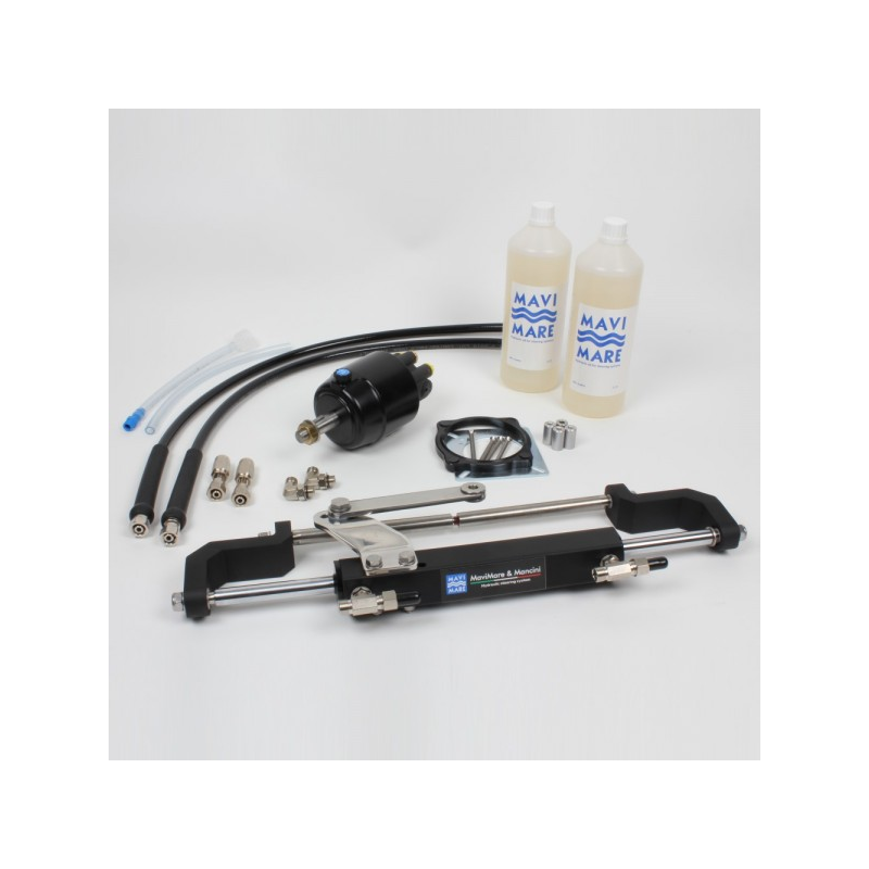 Kit GF150BRTComprende: Pompa GM0-MRA capacità 17 cc, giri da banda a banda 4,9 + cilindro MC150BR + kit raccordi + kit imbarco olio + 6x2 mt tubo SAE100R7 5/16 con raccordi pressati da un lato + 2 Lt. olio idraulico. E’ possibile fornire i tubi completamente raccordati fornendoci la lunghezza definitiva. Asta di collegamento al motore composta da due metà per facilitare il montaggio/smontaggio del cilindro in condizioni di poco spazio nel pozzetto. Per motori Honda 115/130 (vecchio modello fuori produzione) e Yamaha 40/50/60/70, Optimax 90 e 155 installare la leva X.342.
