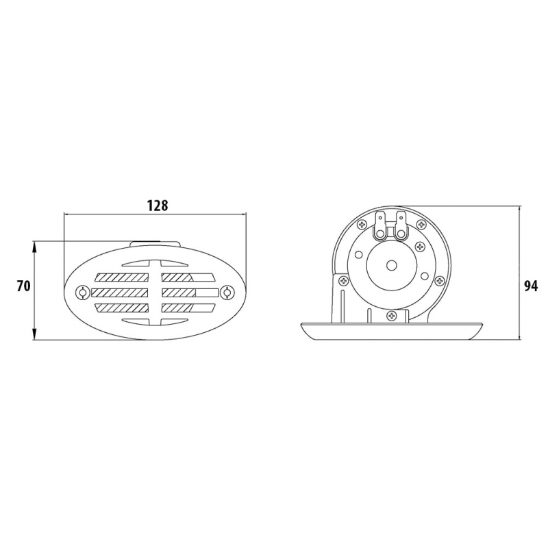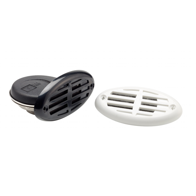 Tromba ad incasso elettrica in acciaio inox, doppia mascherina intercambiabile in abs, una di colore bianco, una di colore nero. Alimentazione a 12 V - 2 Amp, livello sonoro 110 dB.
